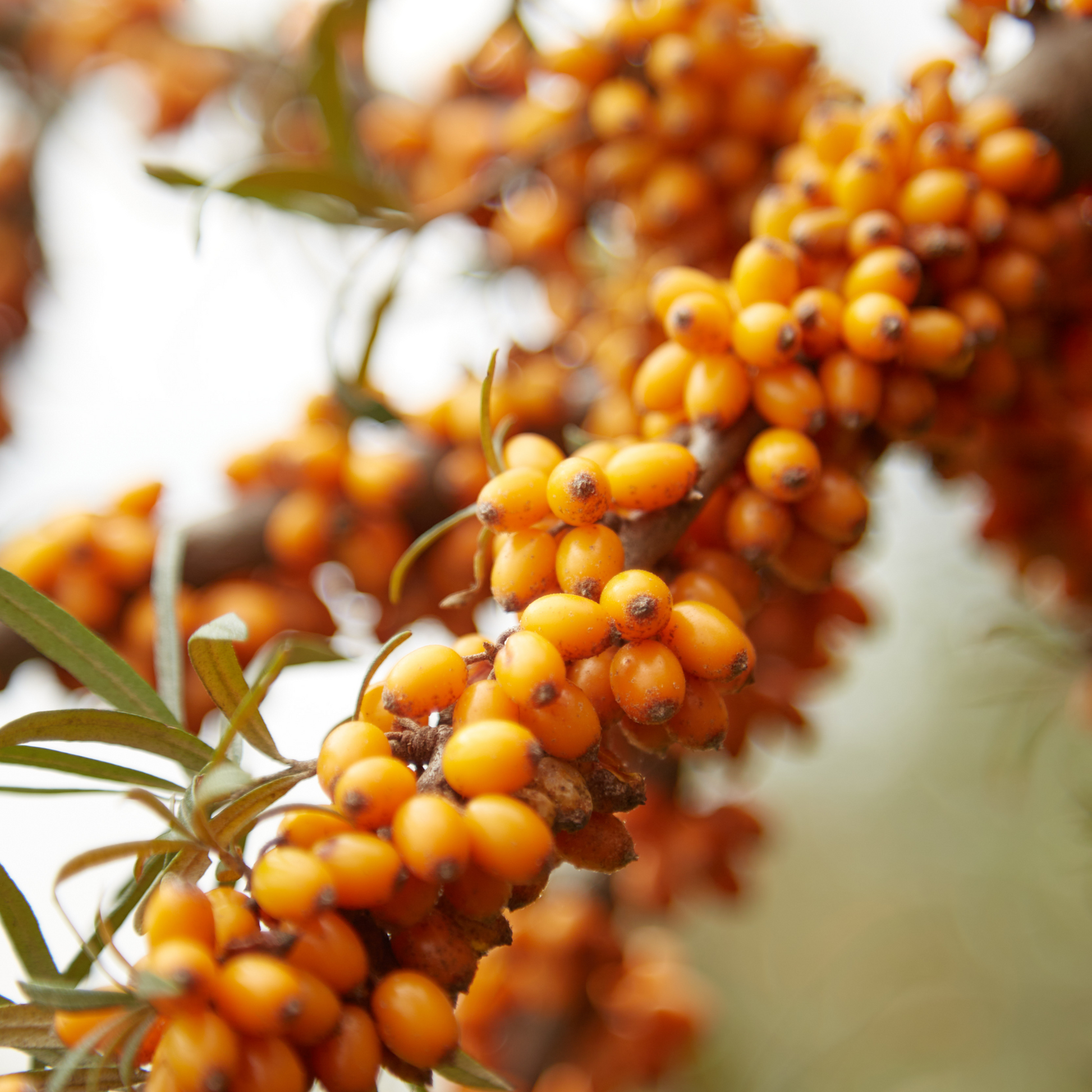 Mit einem außergewöhnlichen Nährstoffprofil, das Vitamine (A, B, C, E), essenzielle Fettsäuren (Omega 3, 6, 7 und 9), Mineralstoffe (Magnesium, Phosphor, Kalium und Zink), Aminosäuren und Antioxidantien umfasst, wird Sanddorn heute weltweit als Super-food gefeiert, das den Körper von innen heraus nährt.